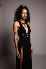 This handcrafted necklace showcases three obsidian stones, each carefully placed to catch the light. Crafted from recycled leather, the piece is accented with snake vertebrae bones shaped in brass. Two detailed vessel head charms, also in brass, sit symmetrically, giving the necklace a sense of strength and boldness.